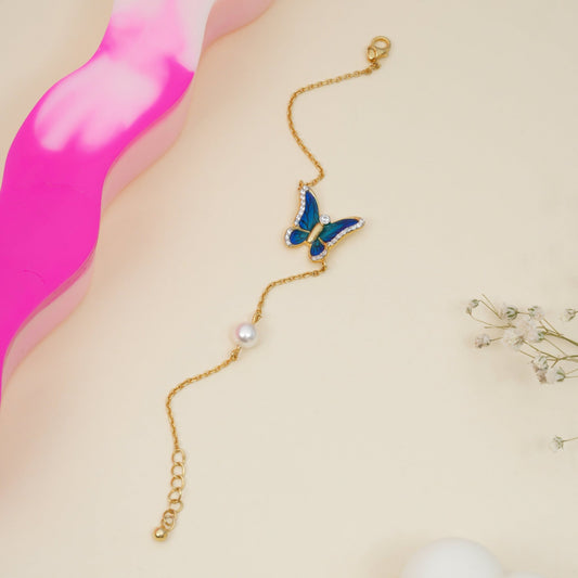 Butterfly Pearl Charm Bracelet