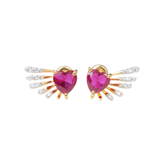 Wing Style Ruby Heart Earring | 925 Sterling Silver | 18k Gold Plated