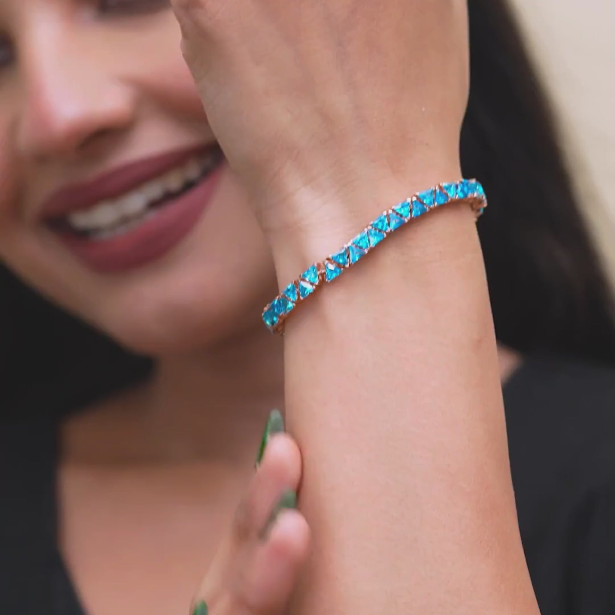 Blue Triangle Tennis Silver Bracelet for Women | 925 Sterling Silver