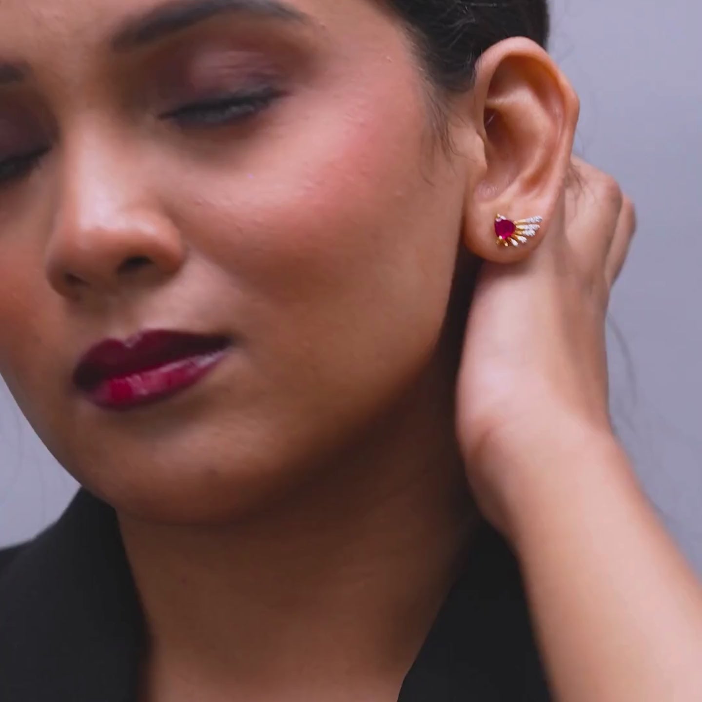 Wing Style Ruby Heart Earring | 925 Sterling Silver | 18k Gold Plated